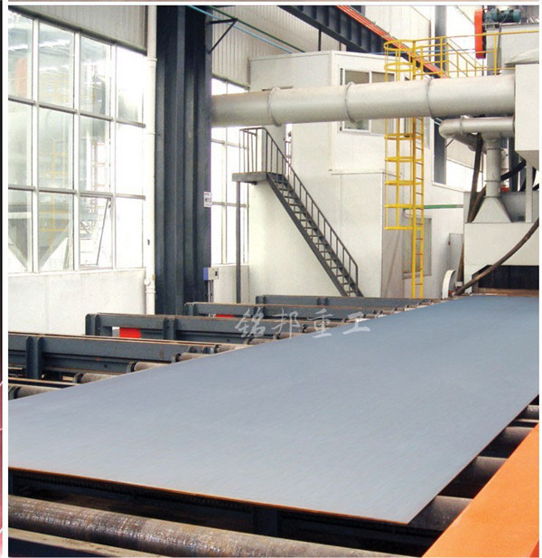 鋼板及型鋼預處理線是指將鋼材在加工前經表面拋丸除銹后,涂上一層保護期底漆并烘干漆膜的加工工藝。板材經預處理加工后,可提高構件的抗腐蝕能力,及抗疲勞性能。